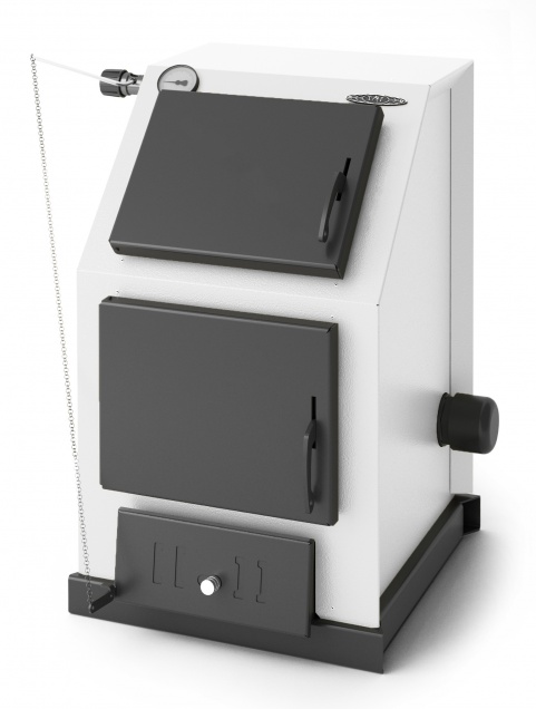 Для лёгкой загрузки угля предусмотрен широкий наклонный прямоугольный люк с удобной дверцей. Нижний люк стал прямоугольным и расположился ближе к полу для удобства загрузки дров и очистки колосника. Для минимизации теплопотерь дверцы обоих люков по всей площади теплоизолированы огнеупорным материалом и плотно прилегают к корпусу. Кроме того, благодаря этому ручки дверок не нагреваются выше безопасной температуры. Для безопасной и удобной эксплуатации котел оснащен встроенным термометром, который определяет температуру теплоносителя.